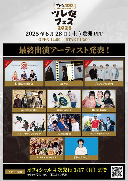 すべて見る忘れらんねえよ主催イベント『ツレ伝100th Anniversaryツレ伝フェス2025』の最終出演アーティストが発表された。