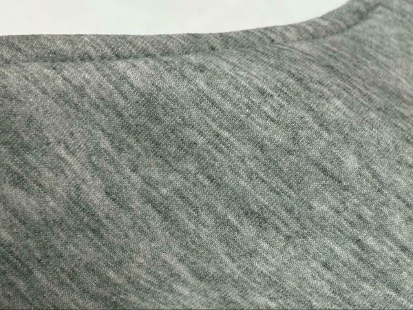 実際に着用してみると、スウェット素材なのでとっても軽い!身幅が46.5cmと余裕のあるサイズ感なので窮屈さはまったくなし。筆者の場合、脇のあたりにかなり余裕がありましたが、ほぼストレートなシルエットのため、ダボッとした印象にはなりません◎