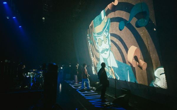 この日のイベントは主催である04 Limited Sazabysがシークレットゲストを迎えてツーマン形式で開催された。今や04 Limited Sazabysのお家芸ともいえる『MYSTERY TOUR』を彷彿とさせる完全シークレット形式にSNSでも会場でも様々な憶測の声が飛び交っていた。この光景もまさに『MYSTERY TOUR』のそれである。Zepp Nagoyaの20周年、04 Limited Sazabysのワンマンライブでもドラマなんてあり過ぎるほどなのに、この日にシークレットゲストを迎える意味や意図は何なのだろう。そんなことを考えながら開演時間を待つ。会場BGMはこの20年間を象徴するような名古屋出身のアーティストの楽曲が使用されている。そういうとこ。そういうとこが04 Limited Sazabysだ。彼らが名古屋から東京に活動拠点を移して久しいが、地元を背負うということは決してそこに留まることではなく、地元を背負って活動すること。ほら、ライブでも「名古屋の04 Limited Sazabysです」って言い続けているでしょ。地元をレペゼンするってそういうことだ。