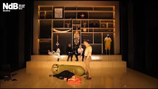 1936年~1939年に起こったスペイン内戦を受けて執筆された、戦争により夫と息子たちを次々と失くしていく母親の物語は、約90年の時を経ても色あせず、パーツルの見事な演出と、ブルノ国立劇場ドラマ・カンパニーのリアリティが溢れる演技で、皮肉にも、まるで現在の世界情勢を今すくいとったかのような作品となっている。