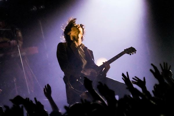 そして、パワーとBPMを同時に上げて初期の代表曲「褒めろよ」で、ソールドアウトで超満員のフロアに無数の拳が突き上がる。あえて新曲も多く盛り込んだベスト・アルバムが単なるキャリアの振り返りではなく、明確にネクストフェーズを示すものであることを証明するロケットスタートは大成功。そこから荒々しく太いブルースロック「焦燥」、爽快かつ力強い「吹き抜く風のように」、幻想的な田園風景が浮かび上がるようなバラード「美しい棘」と、それぞれ色彩も温度も異なる3曲を演奏し、その音楽的な多面性をあらためて感じさせてくれた。