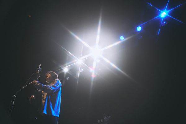 そして10代の不遜なほどの超然とした気持ちが蘇る「国」、続いて大江千里の「MAN ON THE EARTH」のカバーを試みるのだが、崎山曰く“花粉の権化”のせいで歌詞が飛んだらしく、曲順を変更。次の曲の説明を兼ね、上京後4年間、初めてのひとり暮らしが良くも悪しくも自分と向き合わざるを得ない時間だったことを語り、「燈」を披露。TVアニメ『呪術廻戦』「懐玉・玉折」EDでなじみの曲だが、弾き語りではより歌詞とメロディが際立ち、トラップ調のタイム感に乗るラップに近い押韻も明快に聴き取れて、MCで明かされた時期の心情がまっすぐ飲み込めた。