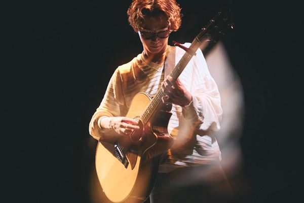 一方、後攻の森はひらりとステージに舞い込んだ風のように高速フレーズを盛り込んだ長めのイントロで、インストゥルメンタリストとしての自己表現も見せているかのよう。まさに1曲目に選んだこの「台風の目」にふさわしい弾き語りのアレンジだ。音源ではピアノが印象的なこの曲をストロークで加速させ、「もっと足掻いてやろう」と歌う、人としても表現者としてもいい試行錯誤をしていく意思をライブアレンジにも投影する。そしてミュート音をループさせながらギターを持ち替え、ミディアムナンバーの「明日で待ってて」へ。大きなグルーヴを持つことは共通しているが、弾き語りで届けることで、よりクラシックやジャズ、ニューエイジのニュアンスが際立つのはやはり彼のギタリストとしての素地からだろう。歌メロに寄り添うようなアルペジオも心地よい。