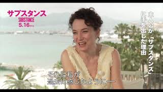 公開されたインタビュー映像では、40歳を過ぎ『REVENGE』で監督としてデビューするも、「(若さを失った)私にはもう価値がない」「映画界でもう居場所が無い」と“強力な負のオーラ“を感じたと振り返るファルジャ監督が、『サブスタンス』を撮るに至った理由を明かす。