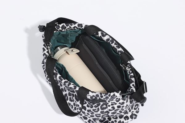 レスポートサックならではの軽量なナイロン素材をベースに、ハンドルなどにエコレザーを採用し、上品なアクセントを加えています。