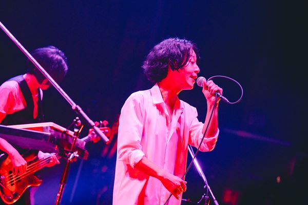それ以外の楽曲は、前作=2023年のアルバム『Almost there』から4曲、それ以降にリリースした「天使ちゃん」「Loss(Angels)」「NINJA POP CITY」はすべて演奏──というふうに、近年&現在の曲を軸にしながら、12、13曲目で9枚目『Sing』(2008年)収録の「ジュブナイル」と4枚目『Circulator』(2001年)収録の「B.D.S.」を演奏したり、本編最後のゾーンの17、18曲目に、2ndアルバム『Lifetime』(1999年)からの2曲=「25」と「白日」を並べたりして、長年のファンを狂喜させる構成にもなっていた。