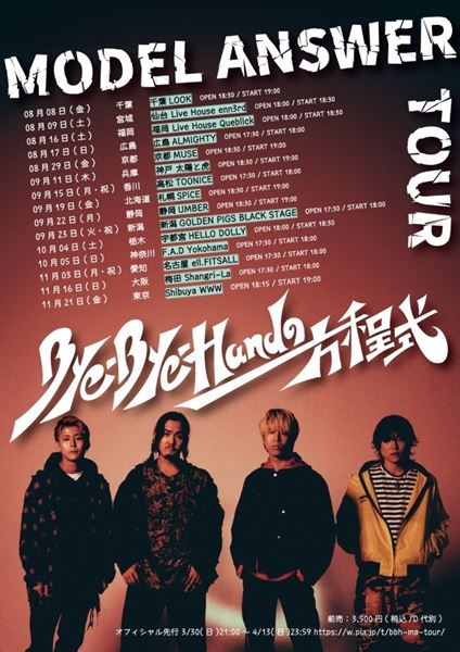 大阪発のロックバンドBye-Bye-Handの方程式が、夏から秋にかけて全国ツーマンツアー『MODEL ANSWER TOUR』開催する。