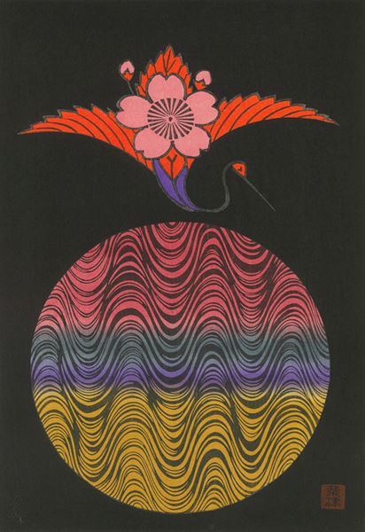 粟津潔《うんすいに鶴》(「北斎模様・潔彩色図譜」より) 1987年
