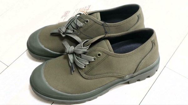 今回レビューするのは無印良品の「撥水タンクソールシューズ」。婦人用と紳士用の2種類があり、カラーは黒とカーキグリーンがあります。