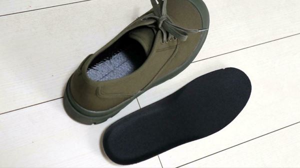 そして、このシューズの大きな特徴は商品名の通り「柔らかい中敷き(インソール)」です。外してチェックしてみると、特にかかとの部分は約2cmの厚みがありクッション性に優れていました◎
