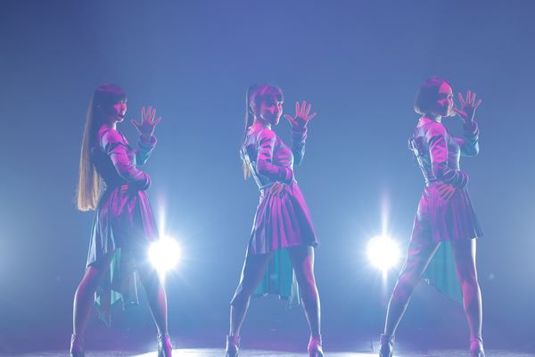 さまざまな楽曲を彩り豊かに届ける中、「ナチュラルに恋して」では、3人のプロフェッショナルさにあらためて脱帽。高速で動く回転舞台の上で踊り、椅子を使ってフォーメーションを変えたり、止まってステップを上がったりと、危険をはらんだことを易々と、美しくやってのけている。だから、見逃してしまいそうになるが、これは体に染み込んだ勘、緻密な歩数計算、3人の阿吽の呼吸、さらに、心を合わせるスタッフがいなければ成り立たないワザだ。今回は特に、3人の動きだけで見せる、が、基本のステージングだったので、観客を飽きさせないという意味でもここは重要なポイントだった。