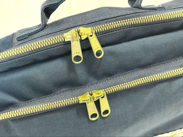 ファスナーはゴールドカラーでほんのり高級感もあります。YKK社製のファスナーはやや固めながらも開け閉めしやすく、ダブルファスナー仕様なので左右どちらにかけても使いやすさ抜群です◎