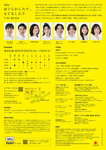 横山拓也「これまでと少し違うアプローチで新奇な作品をお届けしたい」 iakuの新作『はぐらかしたり、もてなしたり』チラシ公開