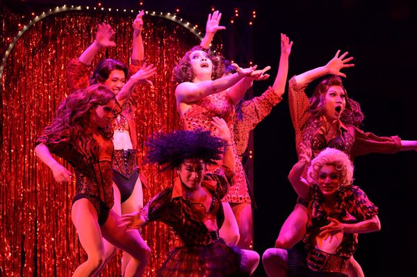 やはりというか、物語の“軸”となるのは、美しいローラの周囲を圧倒する存在感。開演から約15分が経って、ローラが登場すると劇場の空気が一瞬で変わり、客席が興奮と高揚感に包まれていくのがわかる。ローラがエンジェルス(同僚の個性豊かなドラァグクイーンたち)を従えて、パワフルなダンスと共に「Land of Lola/~ローラの世界~」を高らかに歌い上げると、ステージ上のみならず会場全体がロンドンのクラブのような一体感に包まれ、客席のあちこちから歓声が上がる。