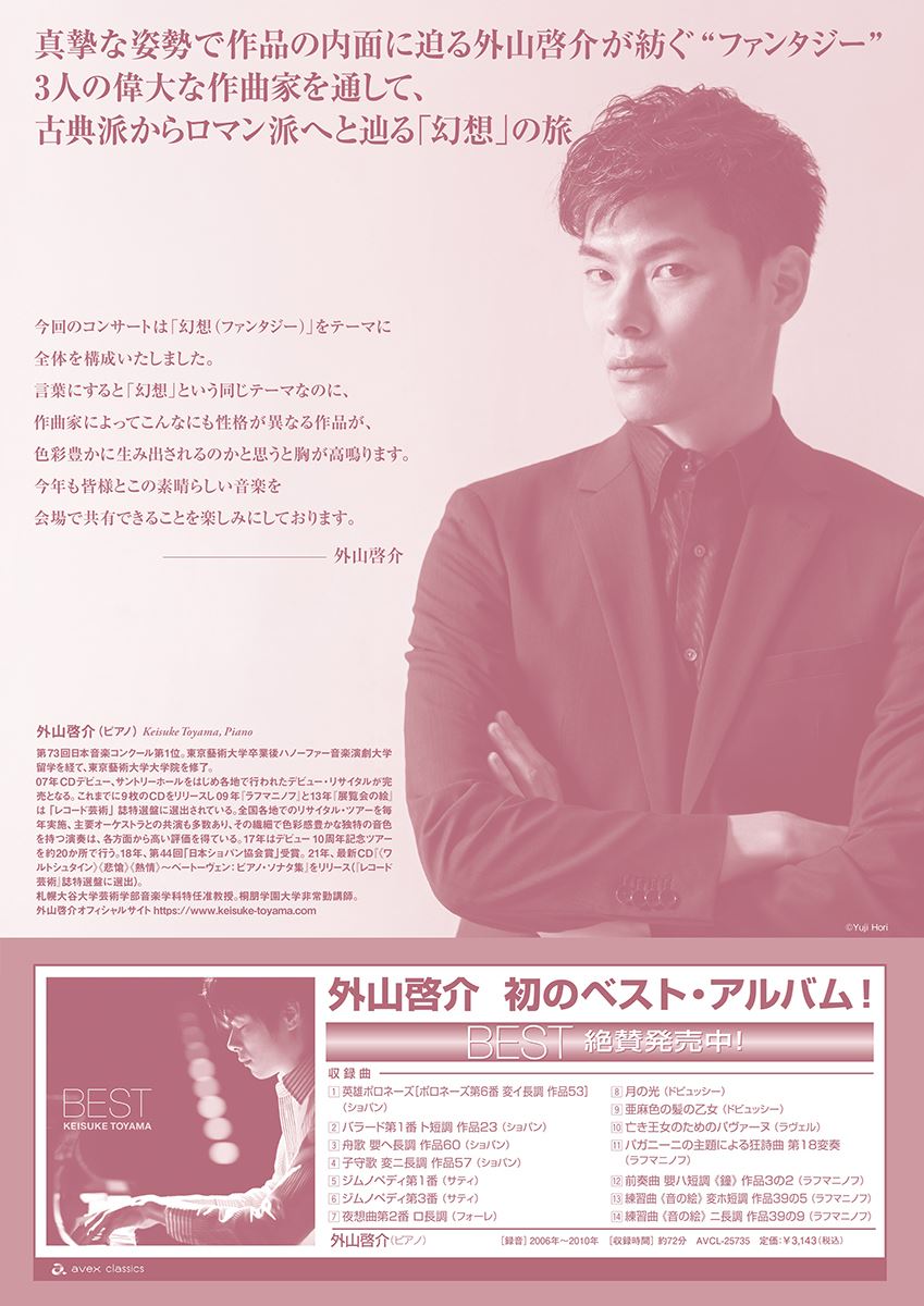 外山啓介がピアノで綴る「幻想」の世界! モーツァルト、ベートーヴェン、そしてショパン