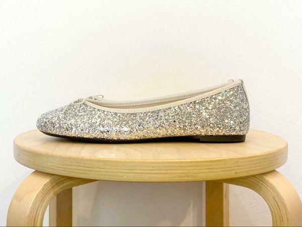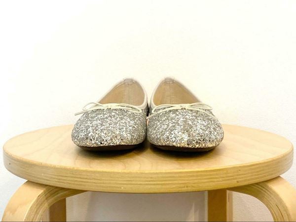 きらきら輝くグリッターと、ころんと丸い形状がおしゃれなバレエシューズです。サイズ展開とカラバリはともに豊富!普段24.5cmサイズの靴を履いている筆者は、コーディネートに程よいアクセントを加えてくれそうな「シルバーグリッター」のLサイズを購入しました。