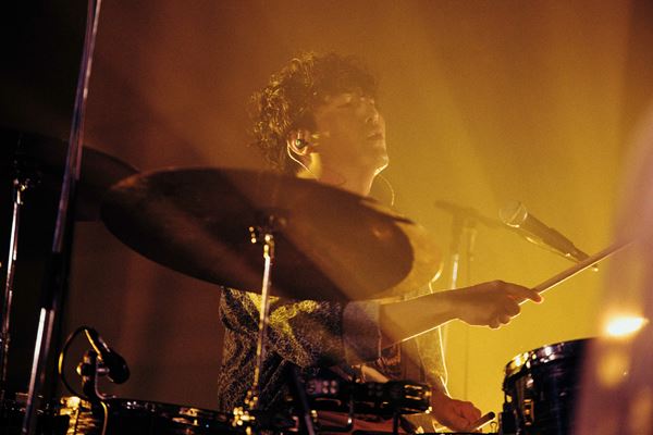 暗転すると、雑踏の音、踏切の音、映写機のような音が会場を包み込み、サウンドコラージュとして観客の耳に届く。彼らは2月に前後編を合わせてひとつの作品となる3rdフル・アルバムの“前編”にあたる作品『合歓る-walls』をリリースしたばかり。コンセプチュアルな物語性を持った新作を踏まえての独特な導入で期待を高める。