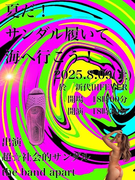 すべて見るロックバンド・超☆社会的サンダルが、8月9日(土) 東京・新代田FEVERにて開催する主催イベント『夏だ!サンダル履いて海へ行こう!』にthe band apartが出演することを発表した。