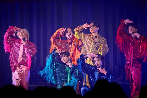 オープニングを飾る楽曲は『UNKNOWN GROOVE』。金髪をきらめかせ、まずは森田璃空がセンターに踊り出ると、大きな歓声が上がる。幕開けにふさわしい、6人の力強い気合の入ったパフォーマンスで魅了していく。