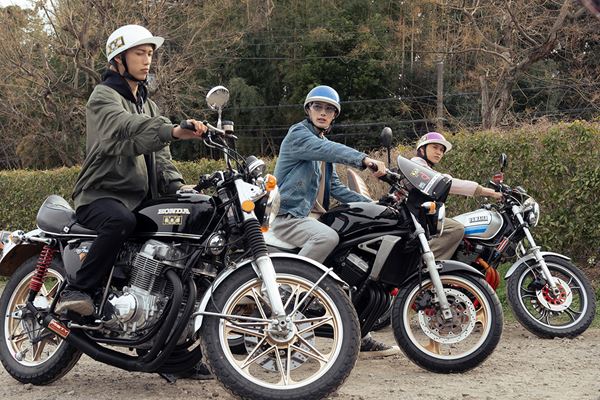 「廣島Night’s」に拐われてしまった由本久美(井頭愛海)を救うべく、「極楽蝶」は司の号令のもと、敵陣へ乗り込むことになる。新カットには、川中陽二(池﨑理人)、中村寿雄(山中柔太朗)、岩見エイジ(井上想良)の幹部3人がそれぞれ単車に跨り、突撃準備万端と言わんばかりの表情で待ち構える姿が収められている。