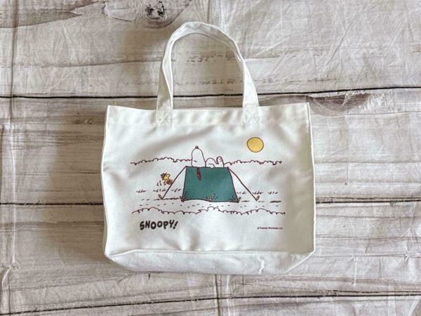 正面にアウトドアを楽しむスヌーピー&ウッドストックのイラストプリント入りデザインです。