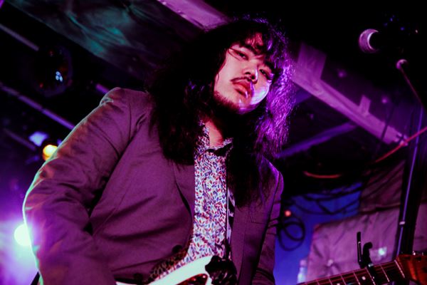 巻き舌で、徐々に曲の馬力を上げていくと、「よろしく」(オニザワ)の言葉と共に続く「17」へと突入。ノイジーなギターと疾走感のあるビートで、観客を揺さぶっていった。「魚を追いかけて」から「チチンプイプイプイ」と、ボリューム感のあるバンド・アンサンブルに観客がコブシを上げ、前のめりなくらいにシンガロングする。まだまだ序盤だが、バンドと観客との親密なムードが感じられる。