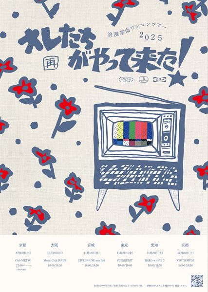 京都にて”こどもの日”に立ち上がった5人組バンド・浪漫革命が、8月23日(土)に行われる京都でのオールナイトイベントを皮切りにスタートする、浪漫革命ワンマンツアー『[再]オレたちがやって来た!!』の開催を発表し、メインアートワークも公開した。