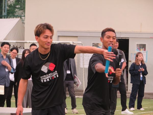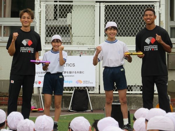 東京2025世界陸上バトンプロジェクト、サニブラウン&橋岡が小学生に活躍を誓う!