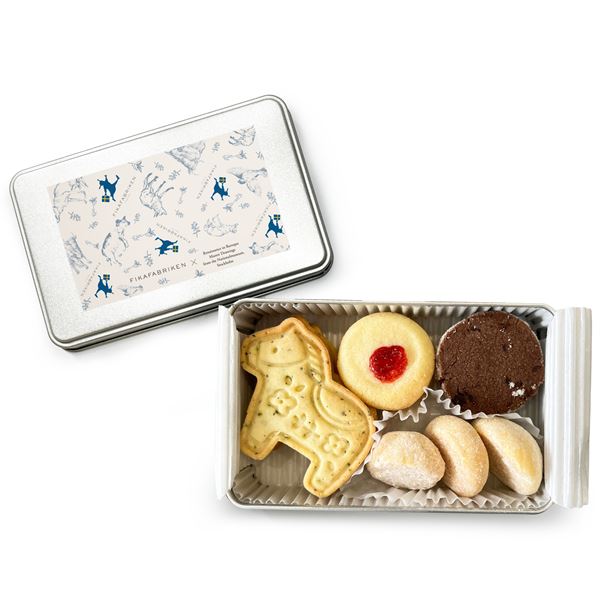 世田谷に店舗を構える、スウェーデンを中心とした北欧菓子のお店「FIKAFABRIKEN(フィーカファブリ―ケン)」とコラボ。フィーカファブリ―ケンのロゴと同展の出品作品をあしらったオリジナル缶に、人気の紅茶のサブレをはじめとした焼き菓子を詰め合わせて販売。