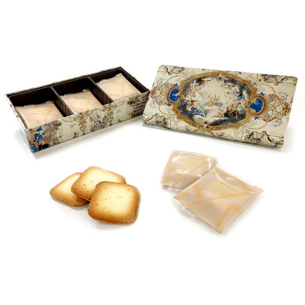 スウェーデン北部の小さな町の名前(JOKK MOKK)を由来とする人気洋菓子ブランド「ヨックモック」とコラボ。同展に出品されるルネ・ショヴオーの《テッシン邸大広間の天井のためのデザイン》をあしらったオリジナルBOX。