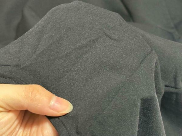 見た目はストレッチ素材っぽさを感じさせない、ハリのある質感。上品な印象なので、学校行事やちょっとしたレストランにも着ていけそう♪
