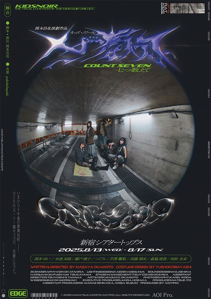 また公演決定を記念して、7月13日(日) 19時より東京・LOFT9 Shibuyaで前夜祭イベントの開催が決定。過去の「キッズ・ノワール」作品に触れながら、いよいよ最終章を迎える本作の制作秘話を、脚本・演出を務める岡本と『七つ数えて』のキャストが語り合う。