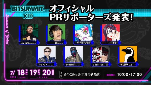 7月18日(金)から20日(日)まで京都みやこめっせで開催される国内最大級のインディーゲームイベント「BitSummit the 13th(ビットサミット ザ サーティーンス)」のオフィシャルPRサポーターズが決定した。