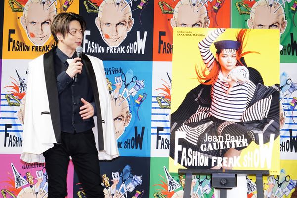 ゴルチエの魅力を「どこに腕を通すのって思うようなデザインもあって、見ているだけで、ワクワクしますし、実際に着ると、感情をいろんなテンションに持って行ってくれる。パワーがすごいんだと思う」と語り、「前回(2023年)の公演は、ドラマの撮影があって、見に行くことができなくて。だから、今回の再上陸は僕が一番ワクワク喜んでいます。楽しみにしていたら、今日ここに立っています(笑)」と、期待に胸を膨らませた。