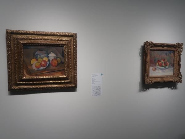次の「静物画」の章では、花々や果実を描くルノワールの繊細なタッチと調和に満ちた色彩の豊かさ、そして幾何学的な形態を複数の視点で構成するセザンヌの実験性がきわだって見える。だが、卓上のクロスと皿と果物を描いた構図にセザンヌの影響がうかがえるルノワールの静物画などもあって目を惹いた。