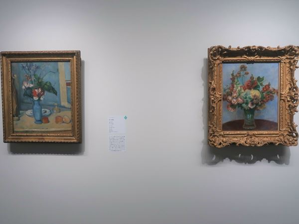 冒頭の章に並ぶのは、二人の静物画や風景画、水浴図を並べた展示だ。例えば同じ花を描いても、色とりどりの花々を柔らかな筆致で生き生きと描くルノワールに対し、セザンヌは青を基調として抑制の効いた花束の描写を見せると同時に、構図の傾きに不安定さも感じさせる。同じ画題が並ぶことで、二人の関心の共通性と個性の違いが見えてくるのが同展の魅力のひとつだ。