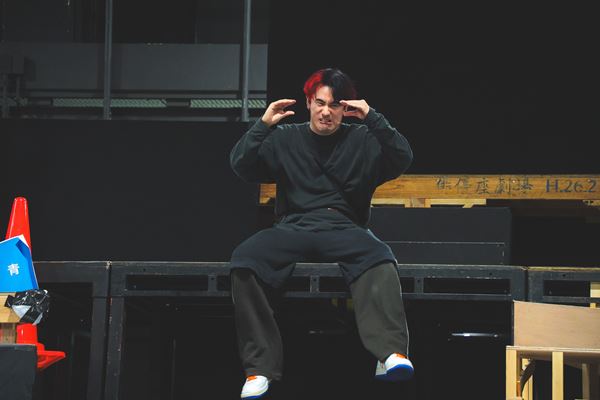 通し稽古が始まると、カラーワーカーとPalette Dancerがステージに飛び出し、全力で歌い踊る派手な展開が繰り広げられ、一気に作品の世界観に引き込まれる。福澤はペンを片手にキャストの演技を見守っているが、自身も出演しているため、出番直前に走ってソデ位置にスタンバイし、終わるとそのまま演出席に戻ってまた演出家の顔に戻る目まぐるしさだ。