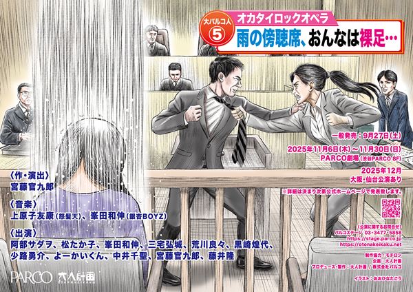 すべて見る2025年11月6日(木) から11月30日(日) まで東京・PARCO劇場にて、大パルコ人(5) オカタイロックオペラ『雨の傍聴席、おんなは裸足...』が上演されることが決定した。