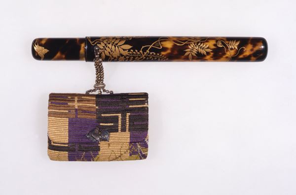 また特集展示として、煙草入れなどの喫煙具も紹介。煙草入れは、きざみ煙草を持ち歩くための入れ物で、江戸時代に喫煙が一般化すると、携帯に適した様式が確立した。相良繍(さがらぬい、結び目を連ねて模様を表す刺繍)など繊細な刺繍を施した煙草入れを、豪華な蒔絵のたばこ盆とともに楽しみたい。