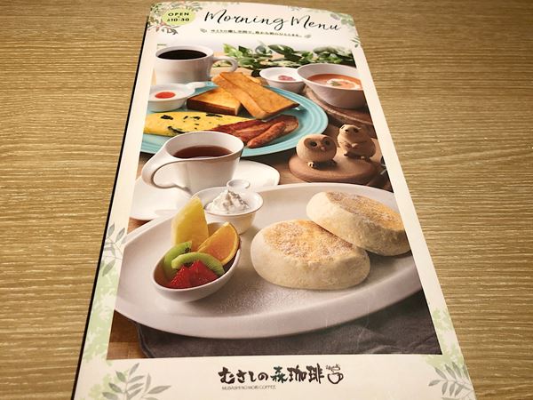 【むさしの森珈琲】朝10時30分までモーニングメニューを楽しむことができます