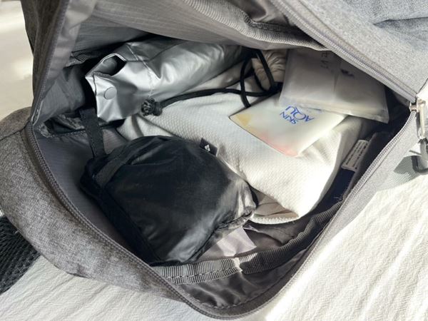 開口部は両開きファスナーのため、背中側からクルッと前に回せばすぐ荷物にアクセス可能。小物用ポケットやペットボトル用ストッカーも備わっていて荷物がごちゃつきにくく、整理整頓が簡単なのも嬉しいポイントです。