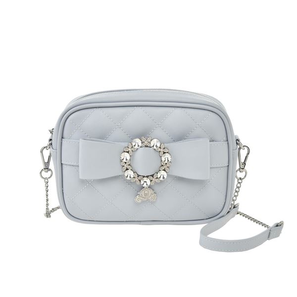 『シンデレラ』のしあわせなシーンをイメージしたバッグは、淡いブルーのレザー風生地とシルバーの輝きの組み合わせ。