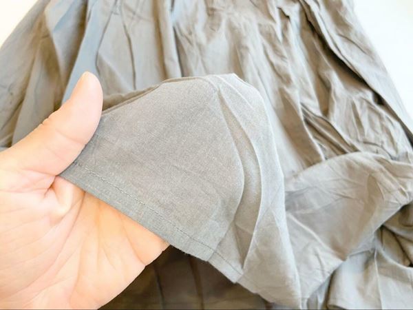 ほんのり透け感はあるものの、裏地付きなので安心して着用できるのも嬉しいポイント。裏地も綿100%で蒸れにくく、肌へのストレスもなし。風通しのよさも相まって、夏のお出かけにぴったりのアイテムです!