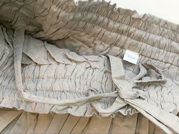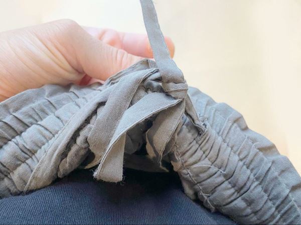 ウエストは総ゴム仕様で、着心地はかなりラク。ゆるめに感じたときは内側の紐で調整も可能です。