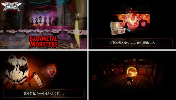 また、Robloxでは、人気楽曲「ヘドバンギャー!!」をテーマとしたマルチプレイ型ホラーゲーム「BABYMETAL MONSTERS」が7月11日(金)にリリースされる。ヘドバンして追いかけてくるモンスターから逃げながら隠された石板を探す、スリル溢れる内容となっている。ゲーム開始前の空間では、骨キャラクターと共にユーザー自身のアバターもヘドバンをしたり、ゲームプレイ後にはBABYMETALのギャラリーが出現したりするなど、BABYMETALの魅力をより多くのユーザーに広げる機会を創出する。