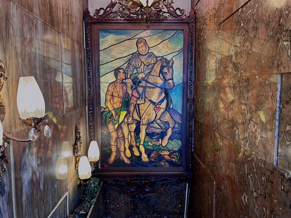 騎士が描かれたステンドグラスを仰ぎ見ながら降りていくと、貴婦人が出迎えてくれた。その奥には、厳粛で畏敬の念を抱く雰囲気がただよっていた。