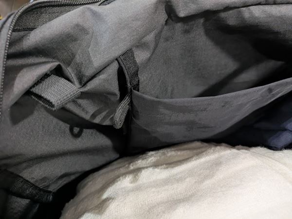 さらに、外側には大きなフラップ付きポケットもあり、折りたたみ傘やペットボトルの収納にも便利です。