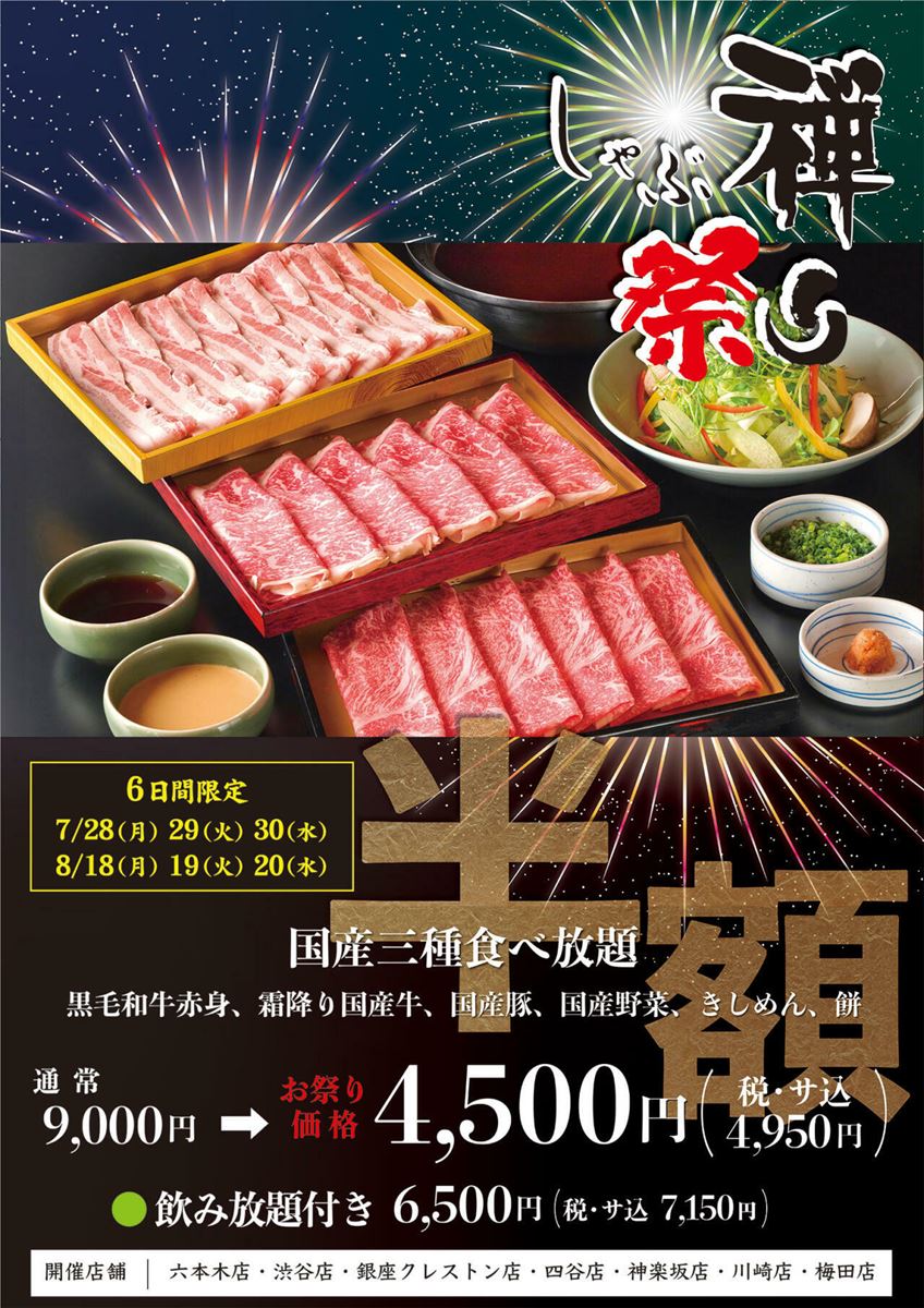 「しゃぶ禅祭り」今年も開催 黒毛和牛赤身、霜降り国産牛、国産豚の3種食べ放題が半額に! 画像(