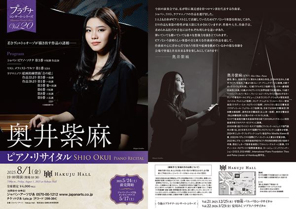 10代から国際舞台で活躍するピアニスト奥井紫麻のリサイタルは必聴