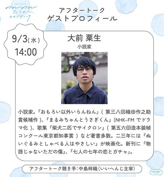 2025年9月3日(水) 14:00公演終演後 ゲスト:大前粟生(小説家)